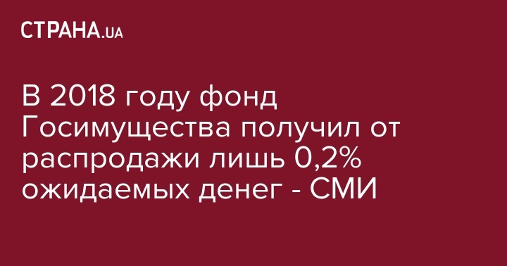 В 2018 году фонд Госимущества получил от распродажи лишь 0,2% ожидаемых денег - СМИ