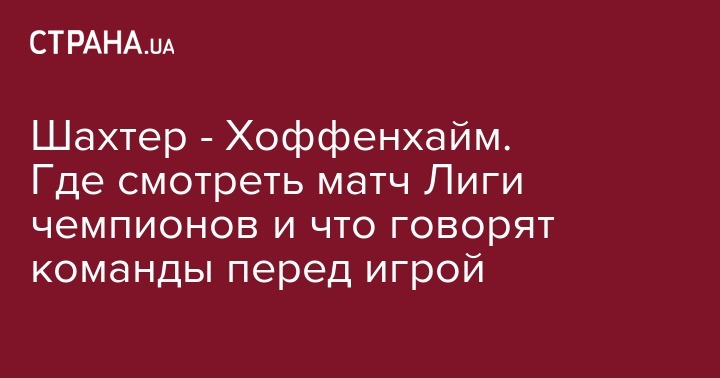 Игра начнется в 19:55, "Страна" проведет онлайн Шахтер-Хоффейнхам. Телевизионная трансляция будет доступна на телеканале Футбол 2.