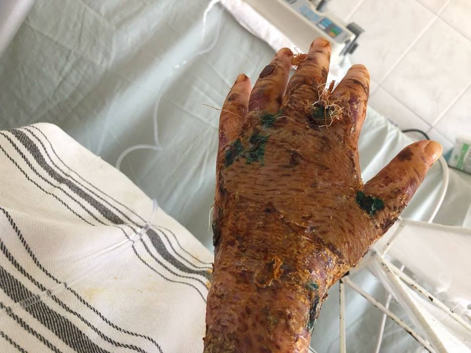 В группе "Хто замовив Катю Гандзюк?" в Facebook опубликовали фото, на котором изображена рука пострадавшей от нападения советницы мэра Херсона Екатерины Гандзюк