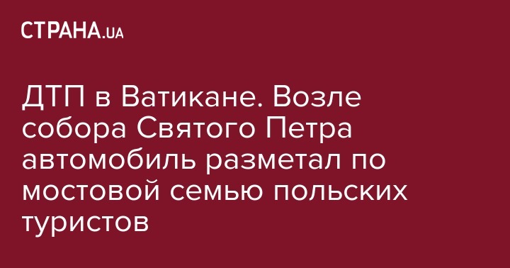 Вчера, 19 сентября, возле собора Святого Петра в Ватикане произошел громкий инцидент. Здесь легковой автомобиль врезался в группу людей. Пострадали польские туристы, передает телеканал Rainews24.