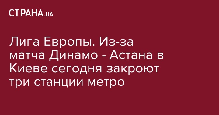 В четверг, 20 сентября, в Киеве пройдет матч Лиги Европы между Динамо и казахской Астаной. Столичный метрополитен по традиции объявил о том, что вход на несколько центральных станций метро будет закрыт.
