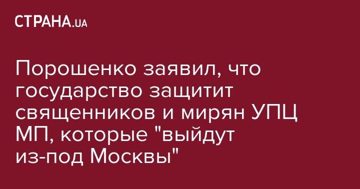 "Государство защитит права тех священников и мирян УПЦ МП, которые добровольно примут решение выйти из-под Москвы, чтобы вместе с другими православными творить единую поместную православную украинскую церковь", - сказал президент.