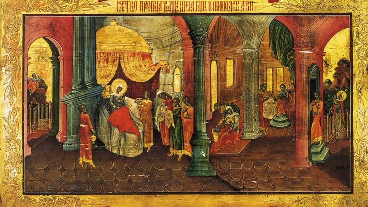 В Библии рассказывается, что Дева Мария родилась в семье благочестивых Иоакима и Анны из Иерусалима. Долгое время у пары не было детей, а однажды священник отказал Иоакиму в праве принести жертву в храме, поскольку тот не создал потомства Израилю.