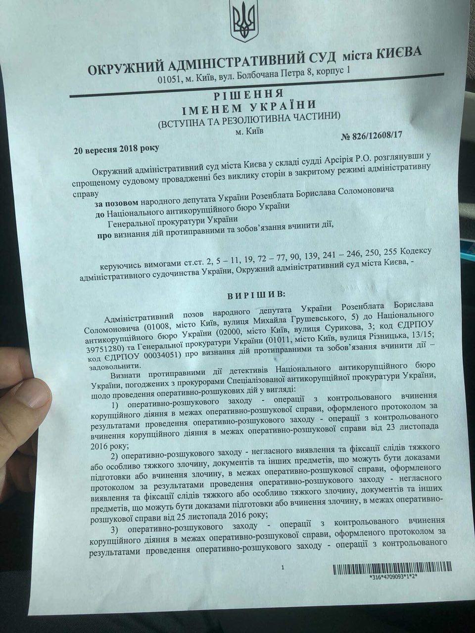 Окружной админсуд Киева признал незаконными оперативно-розыскные мероприятия сотрудников НАБУ в отношении нардепа Борислава Розенблата в рамках "янтарного дела". Об этом корреспонденту "Страны" сообщил адвокат Розенблата Алексей Шевчук со ссылкой на решение суда.
