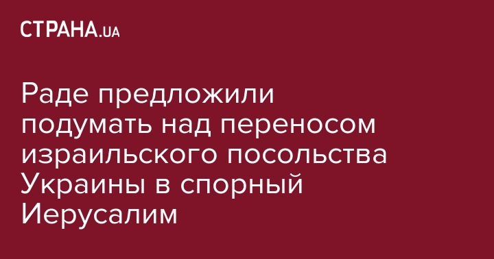 Верховной Раде предложено обратиться к президенту Украины по вопросу переноса посольства Украины в государстве Израиль из Тель-Авива в находящийся в спорном  статусе арабо-еврейский город Иерусалим. Проект постановления об этом № 9107 зарегистрировали Олег Ляшко и другие представители фракции "Радикальной партии".