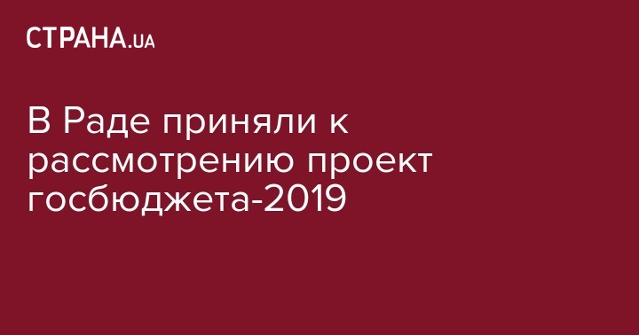 В Раде приняли к рассмотрению проект госбюджета-2019