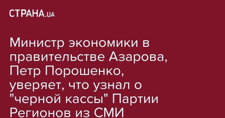 Министр экономики в правительстве Азарова, Петр Порошенко, уверяет, что узнал о "черной кассы" Партии Регионов из СМИ