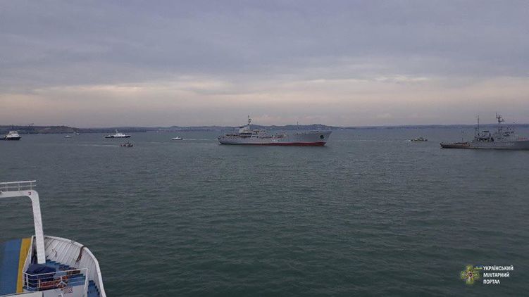 "Переход к Керченскому проливу и через нее проходил в сложной обстановке. На Черном море корабли украинских ВМС непосредственно сопровождались разведывательным кораблем Черноморского флота "Приазовье" и пограничными сторожевыми кораблями РФ "Аметист" и "Дон". В Керченском проливе для непосредственного сопровождения было задействовано более 10 кораблей и катеров ФСБ и Черноморского флота РФ. Самолеты страны агрессора неоднократно совершали облет наших кораблей, в том числе на предельно низких высотах", - сообщила пресс-служба ВМС Украины.