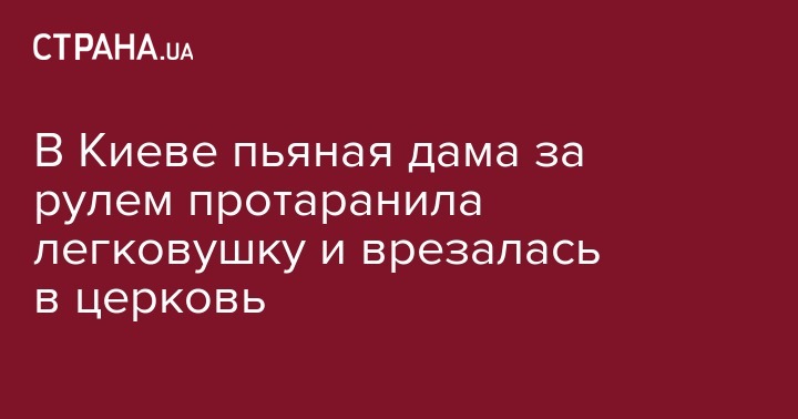 В воскресенье, 24 сентября, около 20:00 в Киеве пьяная женщина за рулем авто протаранила легковушку, а затем въехала в церковь. Об этом сообщается на странице в соцсети dtp.kiev.ua.