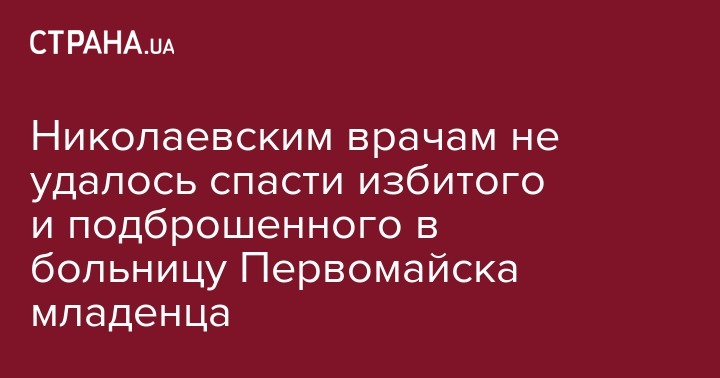 В Николаеве скончался младенец, которого за несколько дней до этого подбросили под больницу в городе Первомайске в тяжелом состоянии. Об этом сообщается на сайте Облздрава Николаева.