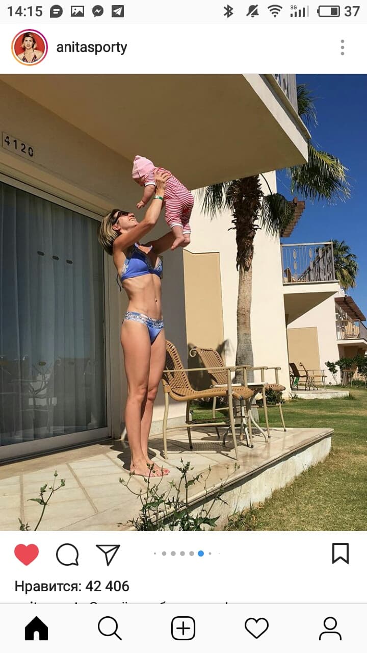 В этот период было все: одышка, ноги терлись друг об друга, изжога, плоскостопие и еще неприятные всякие моменты! После родов (еще и кесарево) я не могла сделать 10 выпадов подряд ( это просто была жесть - просто не было сил в теле) и стало понятно что с 55 кг делать упражнения это не то же самое, что с 72 кг ( с родами ушло 8 кг) и тем более больше! Я стала восхищаться своими подопечными!", - написала Анита Луценко.