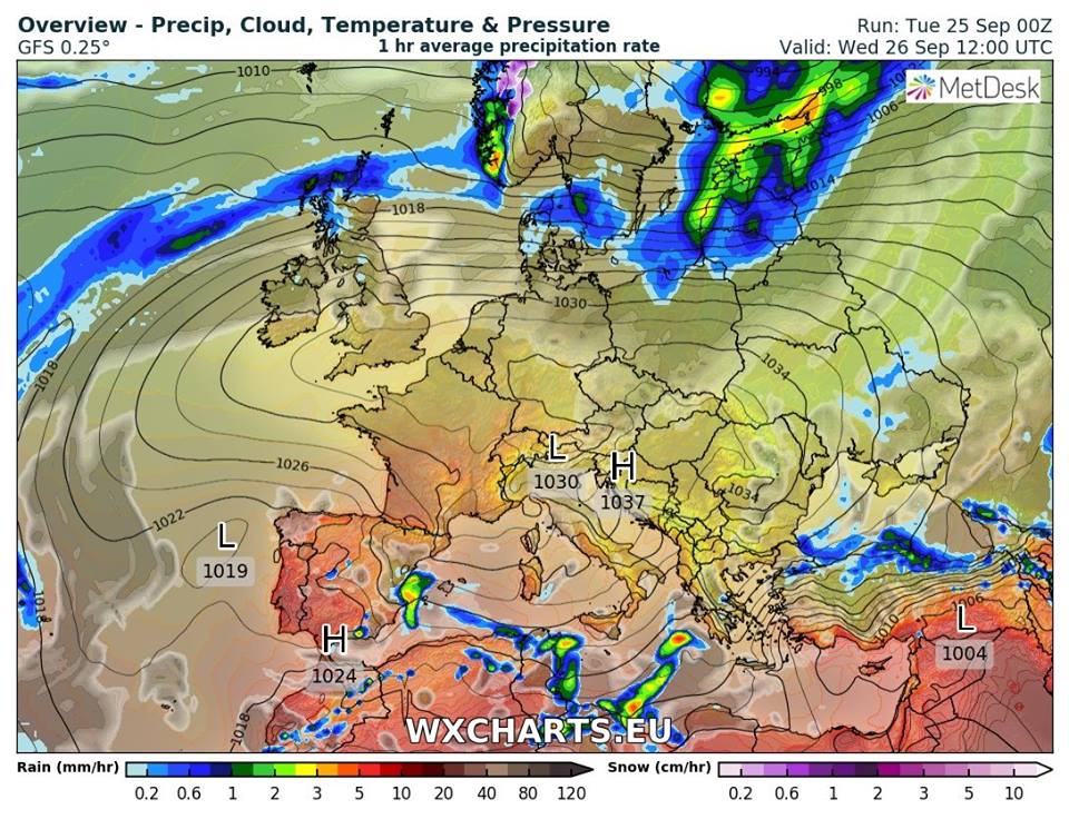 По ее прогнозам, ночью в Украине 26 сентября ожидается +2+9 градусов, местами заморозки 0-3 градуса, днем +9+14 градусов. Лишь небольшой дождь завтра вероятен в Полтавской, Харьковской областях, в районе Днепра и Кропивницкого.