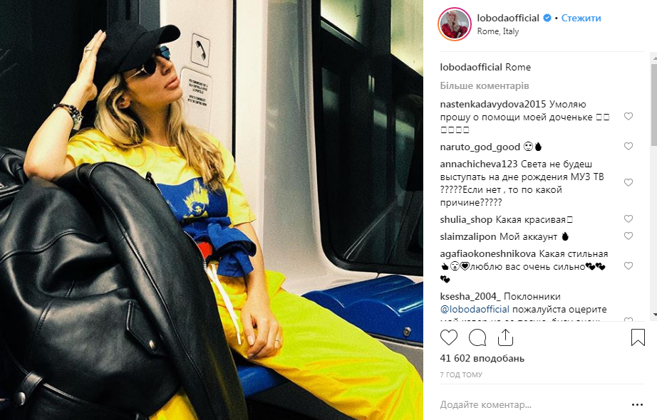 Она позировала в ярко-желтых штанах и желтой футболке с синим рисунком. Судя по обстановке, снимок был сделан в метро Рима. Поклонники в комментариях отметили красоту и стиль певицы, а также пожелали ей хорошего отдыха.
