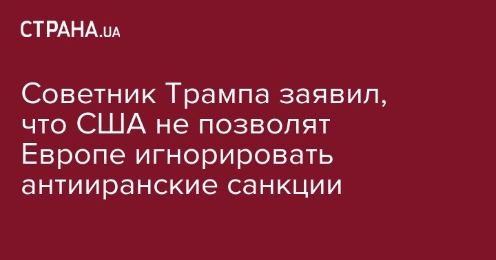 Советник Трампа заявил, что США не позволят Европе игнорировать антииранские санкции