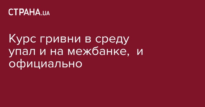 Курс гривни на межбанковском валютном рынке в среду снизился до 28,1575 грн/$1 с 28,04 грн/$1 по итогам торгов 25 сентября, сообщили агентству "Интерфакс-Украина" дилеры коммерческих банков.