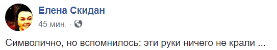 "Символично, но вспомнилось: эти руки ничего не крали", - пишет журналистка Елена Скидан.