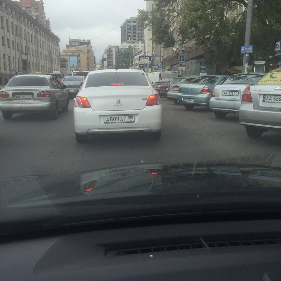 В Киеве местные жители заметили автомобиль Peugeot с номерами так называемой "ДНР". Его фото на своей странице в соцсети опубликовал Дмитрий Соль.