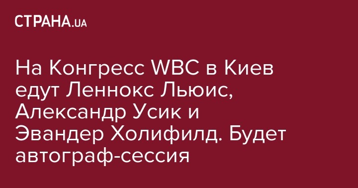 А в 15.00, 2 октября, в торговом центре Gulliver состоится автограф-сессия. Участие в ней примут Леннокс Льюис, Эвандер Холифилд, Александр Усик и Виталий Кличко. Также в рамках мероприятия состоятся конкурсы и интересные розыгрыши для фанов бокса. Вход свободный. В тот же день гости конгресса посетят "Вечер бокса" в столичном Дворце спорта.