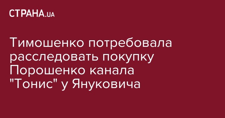 Тимошенко потребовала расследовать покупку Порошенко канала "Тонис" у Януковича