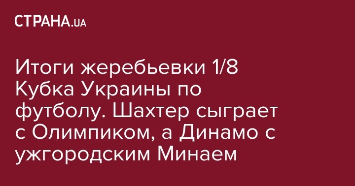 Итоги жеребьевки 1/8 Кубка Украины по футболу. Шахтер сыграет с Олимпиком, а Динамо с ужгородским Минаем