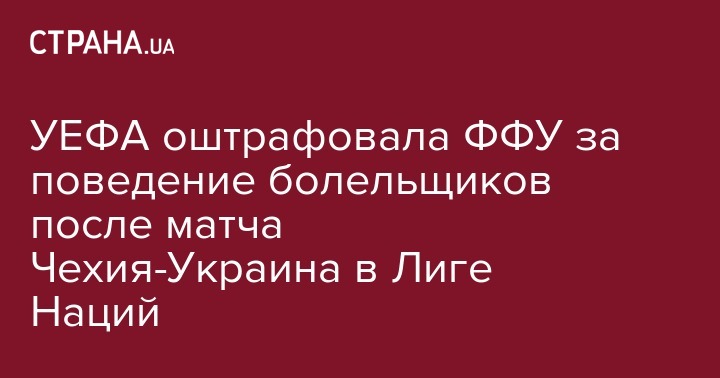 Дисциплинарный комитет УЕФА, рассмотрев инцидент с поведением болельщиков во время поединка Лиги наций Чехия - Украина, который состоялся 6 сентября 2018 в чешском Угерске Градиште, решил оштрафовать ФФУ на 35 тыс. евро. Как сообщает пресс-служба ФФУ, данные средства необходимо внести на указанный счет в течение 90 дней от даты публикации решения.