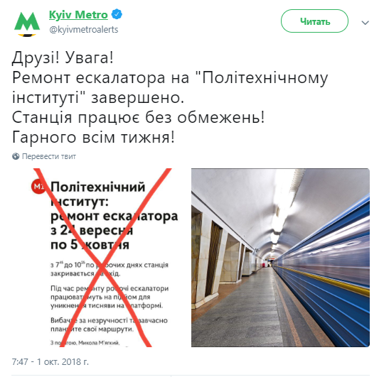 Фото: twitter.com/kyivmetroalerts