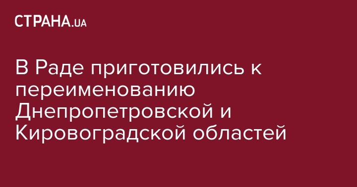 В Раде приготовились к переименованию Днепропетровской и Кировоградской областей