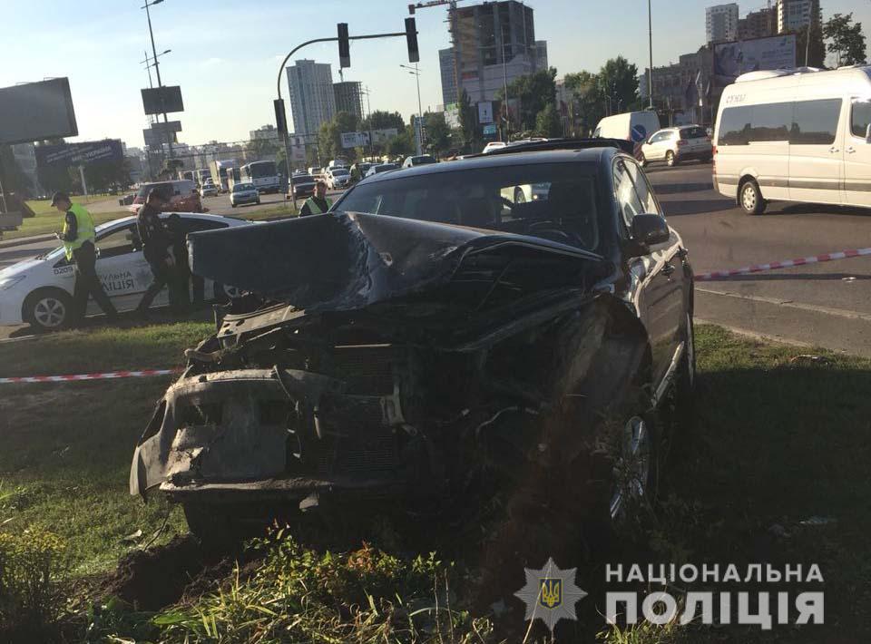 Следователи предварительно установили, что автомобиль Volkswagen Touareg двигался со стороны проспекта Бажана в направлении Бориспольского шоссе. Автомобиль выехал на круговой перекресток и совершил столкновение с автомобилем Fiat Doblo.