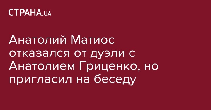 "Относительно дуэли, если хочешь дуэль – нужно смотреть в глаза. А у популярного журналиста размахивать флагом, как обычно это делают политики, это, наверное, недостойно офицера, которым является господин Гриценко. Я не сомневаюсь, и знаю, что меня будут критиковать, но я могу смело и честно смотреть в глаза полковнику Гриценко, будучи генерал-майором, и даже как мужчина, это недостойно обвинять и поливать грязью кого-либо. Есть претензии – приходите, я Вам закажу пропуск, все обсудим", – сказал Матиос.