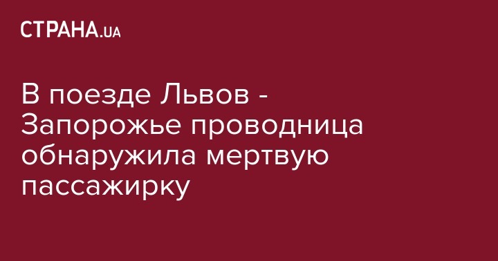 "Пассажирка поезда, которая ехала до станции Кривой Рог в спальном вагоне поезда № 120 Львов - Запорожье, была обнаружена без признаков жизни проводницей. На месте происшествия работали представители Национальной полиции Украины, медики. Поездная бригада дала показания в рамках следственных действий", - говорится в сообщении.