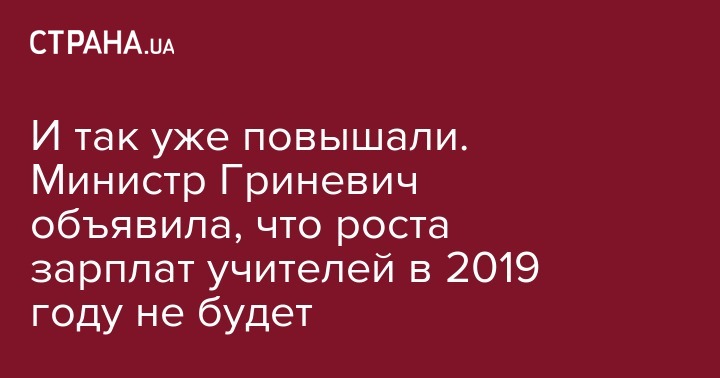 "Для того, чтобы осуществить повышение, нам необходимо дополнительно 110 млрд гривен. Это значительная часть бюджета сферы образования в Украине. Таких ресурсов в бюджете на 2019 год нет. Но мы к этой норме постепенно приближаемся", - отметила Гриневич.
