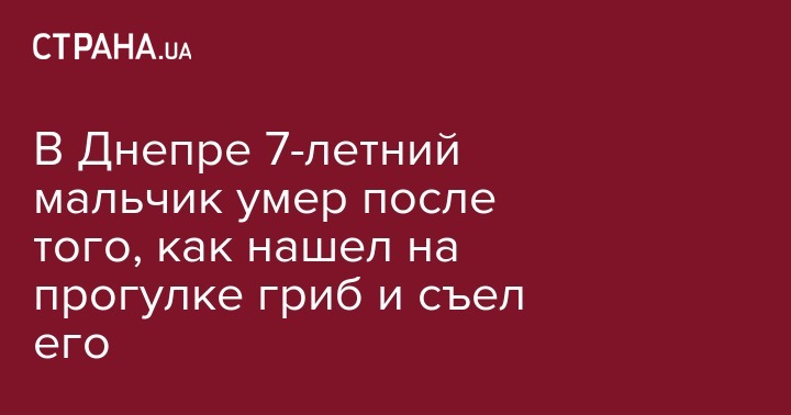 3 октября в Днепре от отравления грибами умер семилетний мальчик. По данным местного издания "Наше місто", ребенок отравился сырым грибом, который нашел во время прогулки еще 30 сентября. Дома у него начались понос и рвота, но мальчик только через два дня признался родителям, что нашел на улице гриб и съел его. Пострадавшего срочно доставили в больницу.