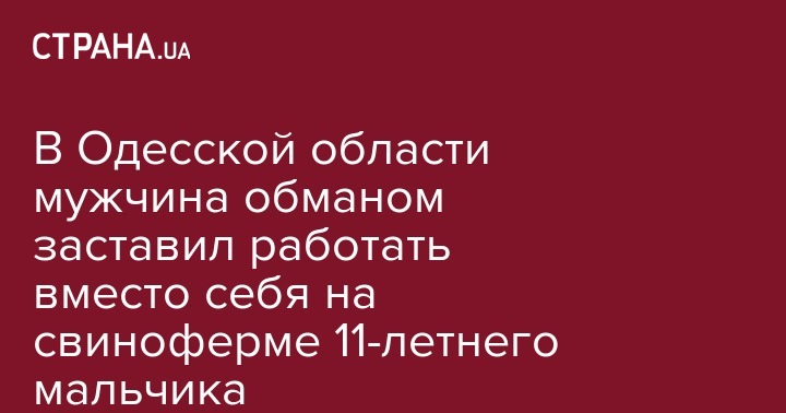 В селе Одесской области местный житель нанял 11-летнего ребенка для выполнения тяжелых физических работ на свиноферме. Мужчина обещал платить мальчику 100 гривен в день, которые ребенок так и не получил. Теперь предприниматель предстанет перед судом. Об этом сообщает пресс-служба полиции Одесской области.