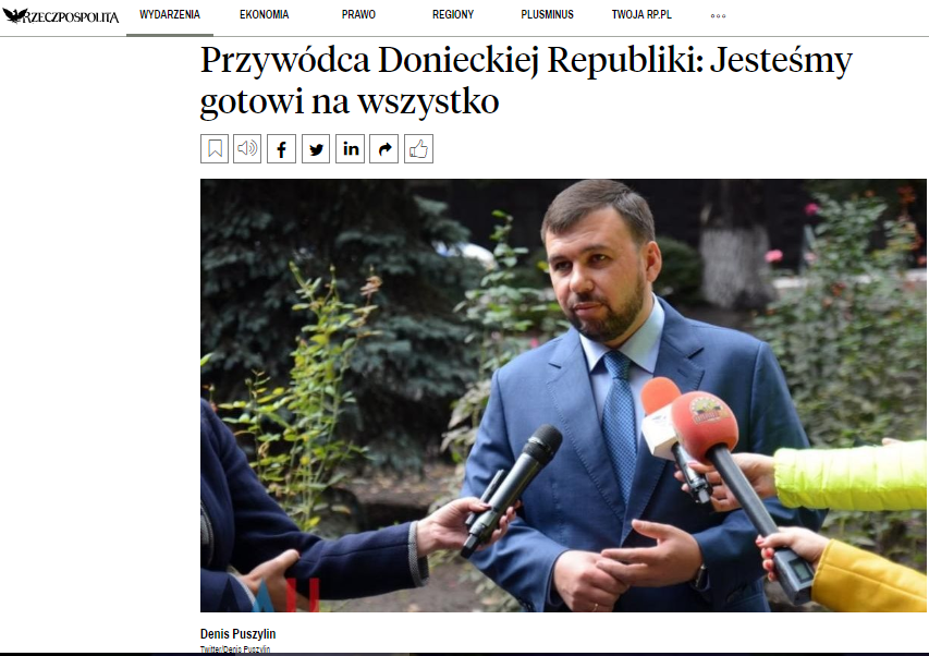 В Польше проправительственная газета взяла интервью у Пушилина