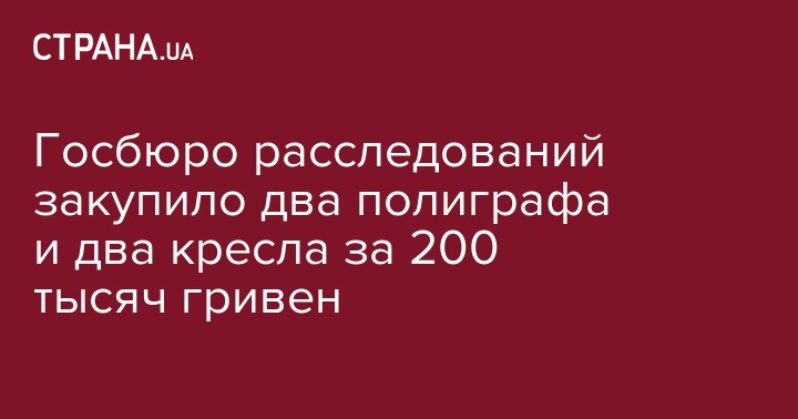 Государственное бюро расследований купило 2 полиграфа и 2 кресла полиграфолога за 200 тысяч гривен. Об этом сообщают "Украинские новости".