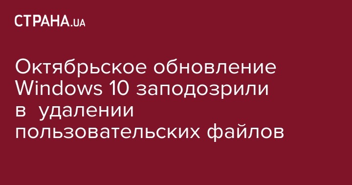 Октябрьское обновление Windows 10 заподозрили в удалении пользовательских файлов