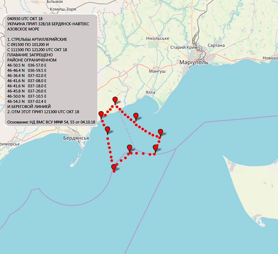 9-12 октября в Азовском море пройдут учения ВСУ, о которых ранее объявил секретарь Совета национальной безопасности и обороны Украины Александр Турчинов.