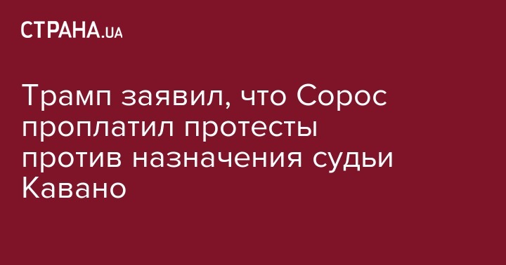 Дональд Трамп заявил, что протесты против Бретта Кавано, которого он рекомендовал на должность судьи Верховного суда, в частности, проплатил миллиардер Джордж Сорос.