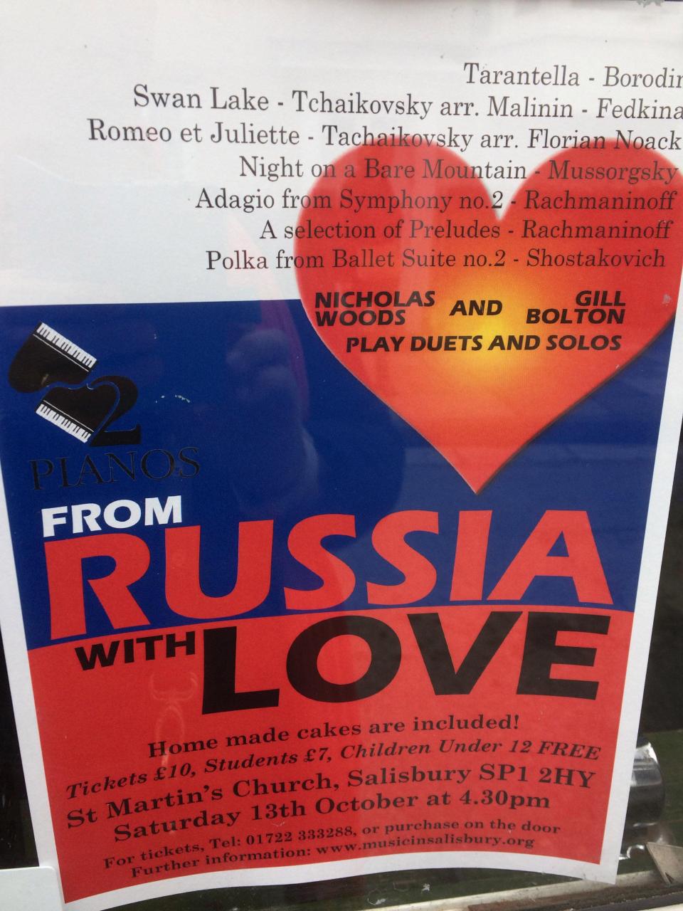 Сообщается, что концерт состоится в церкви Святого Мартина 13 октября. На концерте выступят пианисты, которые сыграют классические произведения русских композиторов, таких как Сергей Рахманинов, Петр Чайковский и Дмитрий Шостакович.