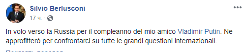 Однако отметим, что бывший премьер-министр Италии Сильвио Берлускони в Facebook сообщил, что летит на праздник к Путину.