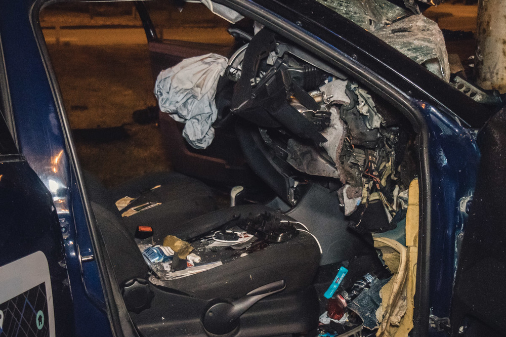 Столичное такси Uber влетело в столб. Авто разорвало на части, пассажир в реанимации