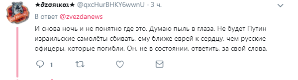 Ранее сирийские ВВС сбили российский военный самолет Ил-20, погибли более 20 членов экипажа. Москва обвинила в провокации израильские ВВС и пообещала усилить сирийскую ПВО более современными средствами защиты.