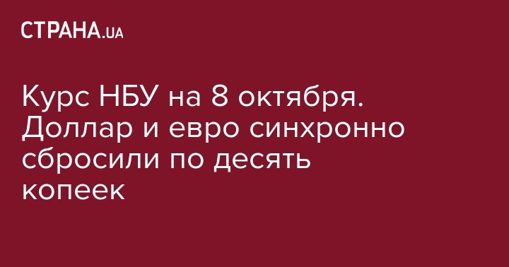 Курс НБУ на 8 октября. Доллар и евро синхронно сбросили по десять копеек