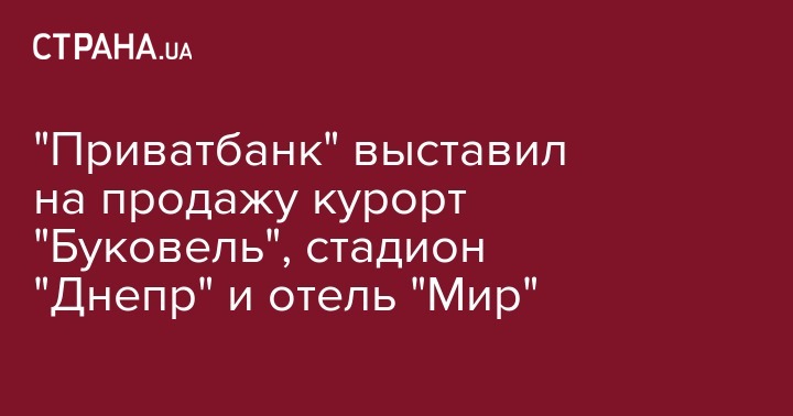 Пресс-служба "Приватбанка" сообщила, что банк намерен предложить инвесторам свою долю в горнолыжном курорте "Буковель", отель Radisson Blu Resort Буковель, а также футбольный стадион и тренировочную базу в городе Днепр.