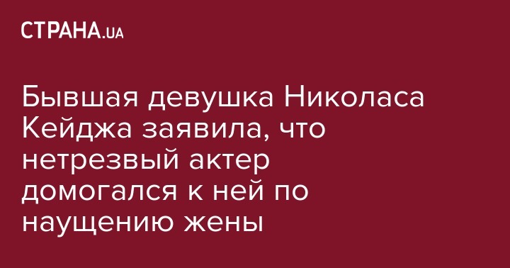 Бывшая девушка Николаса Кейджа Вики Парк обвинила актера в домогательствах, будучи в состоянии сильного алкогольного опьянения. По словам Парк, к такому голливудского актера подговаривала его бывшая жена. Об этом сообщает The Independent.