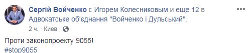 В День юриста, который празднуется сегодня, 8 октября, украинские адвокаты проводят в социальных сетях флешмоб #Stop9055, протестуя против внесенного в ВР президентского законопроекта "Об адвокатуре и адвокатской деятельности". В своей акции юристы призывают не допустить принятия законопроекта №9055, который сужает их права.