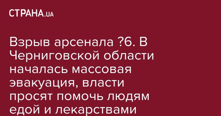 Взрыв арсенала №6. В Черниговской области началась массовая эвакуация, власти просят помочь людям едой и лекарствами