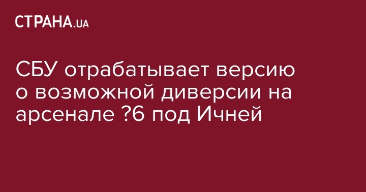 В связи со взрывами на арсенале №6 Минобороны под Ичней Черниговской области Служба безопасности Украины рассматривает в числе прочих версию о возможной диверсии. Об этом говорится в сообщении пресс-службы СБУ.