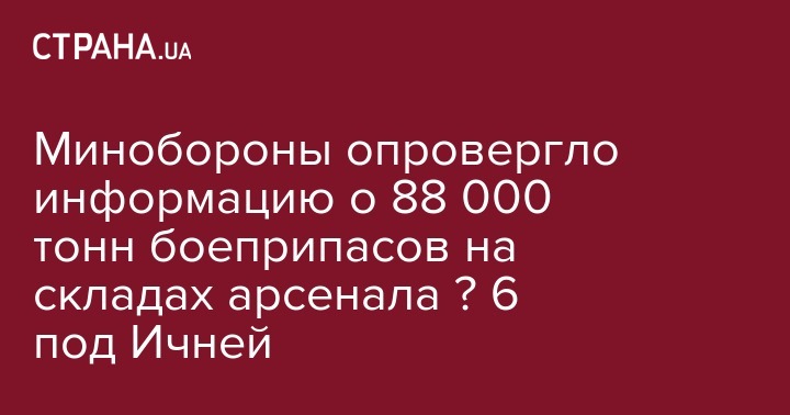 Министерство обороны Украины опровергло информацию о том, что на складах 6-го арсенала под Ичней находилось около 88 000 тонн боеприпасов. Соответствующее сообщение было размещено на странице ведомства в Facebook.