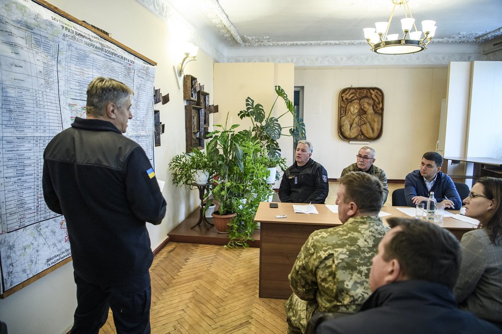 На месте в штабе находятся также председатель ГосЧС Николай Чечеткин и заместитель главы Нацполиции Украины Александр Фацевич.
